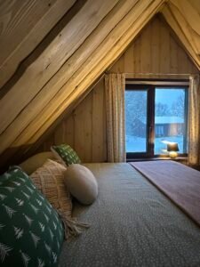 Išėję iš pirties, pateksite į jaukiai, stilingai įrengtą priešpirtį – svetainę. Pirmame aukšte yra ir nedidelė virtuvė su visais reikalingiausiais indais bei buitine technika, taip pat – vonios kambarys. Antrasis pirties namelio aukštas – erdvė, skirta svečių miegui. Miegamajame yra viena dvigulė (1,6 m. pločio) lova, dvigulė sofa – lova ir 2 vienguliai foteliai – lovos. Pirties namelyje gali nakvoti iki 6 žmonių.